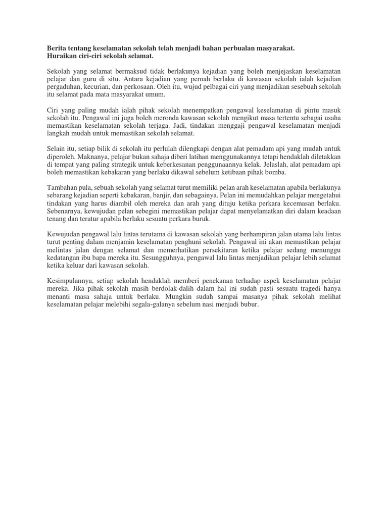 Karangan Spm Sebenar Ciri Ciri Sekolah Selamat
